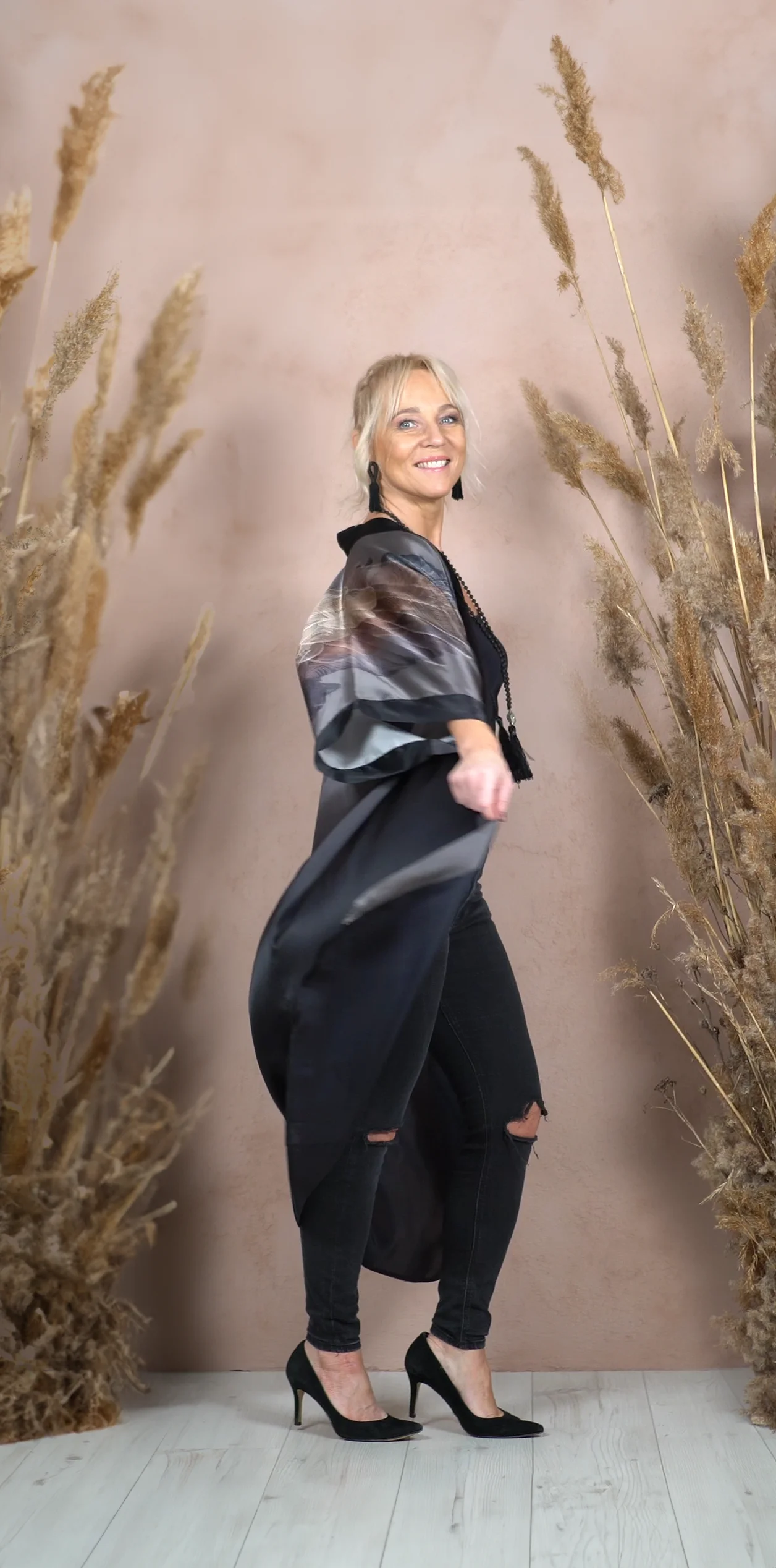 Naked Spirit räägib minu lugu. Mustrid, mida kimonotel näete, on saanud alguse kas minu maalidest või digikunstist. Minu jaoks on iga kujundus kui väike kantav kunstiteos. Mulberry siid on ideaalne lõuend, mis võimaldab mul ühendada oma armastuse peene kunsti ja ajatu disaini vastu. See on looming, mis elab ja liigub koos sinuga, muutes iga kimono unikaalseks ja eriliseks. Siis hakkab ta rääkima ka Sinu lugu.