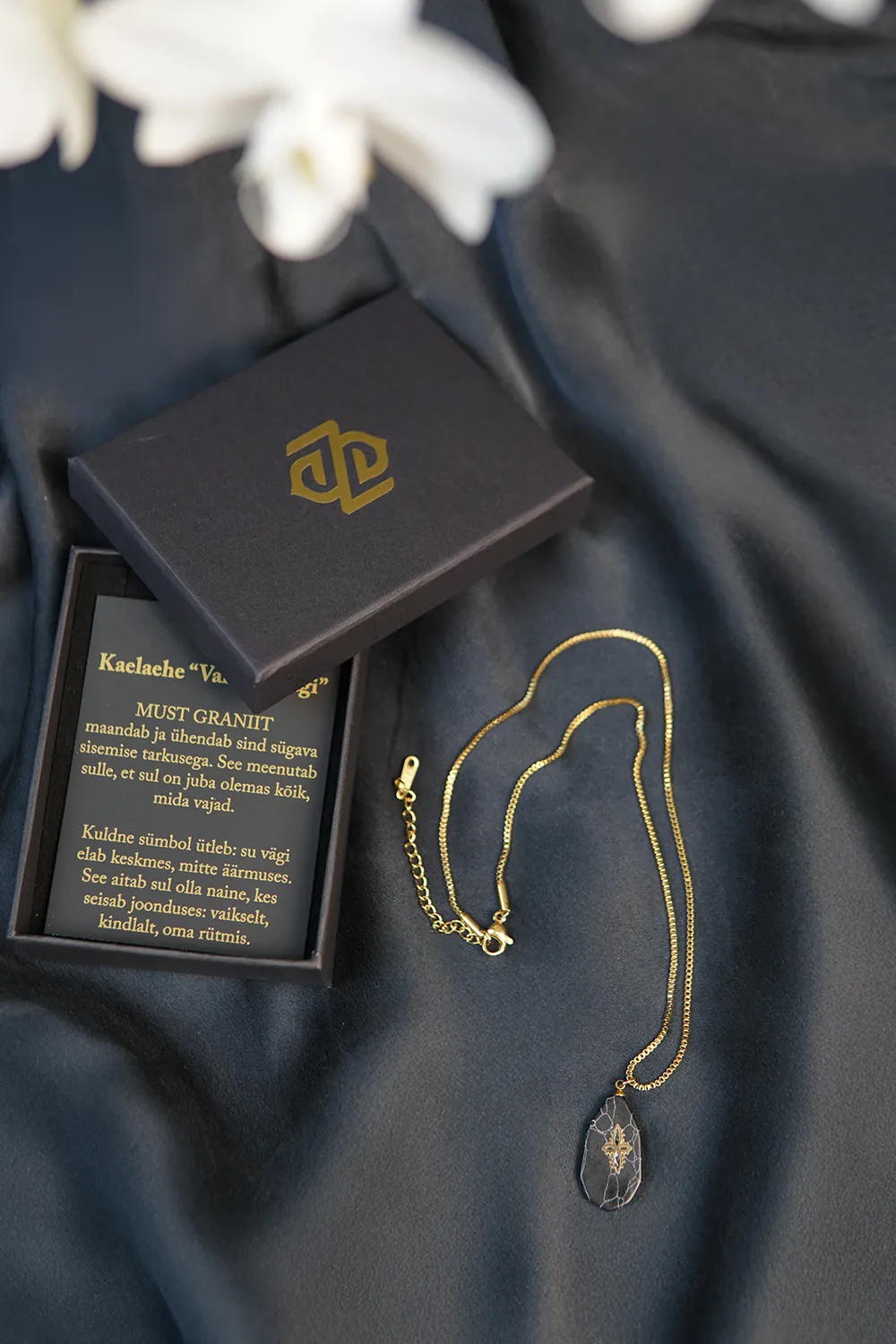 2. Kaelaehe "Vaikuse Vägi" musta graniidi ja kuldse sümboliga