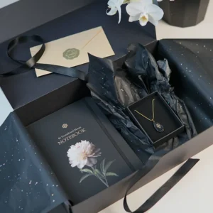 Sisaldab eesti keelset spetsiaalset sisulehte, mis kutsub sind kirjutama iseendast: oma tunnetest, unistustest ja sisemisest ilust.2. Kaelaehe "Vaikuse Vägi" musta graniidi ja kuldse sümboliga